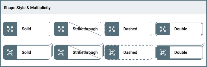 In addition to 4 Styles the Shape can be represented as having more then one instance through Multiplicity. It signifies 'more then one' but the amount of strokes (3) does not correspond to the actual amound of instances.